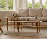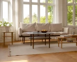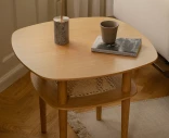 Together Smooth Square 60 on kompakti sohvapöytä massiivitammesta, jossa on luonnonrottinkinen hylly. Pyöristetty muoto ja lämmin puupinta luovat pehmeän ja harmonisen ilmeen – täydellinen pienempiin tiloihin.