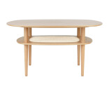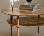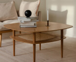 Umagen Together-sohvapöydän ympärillä on hyvin tilaa koko perheelle tai ystäväporukalle. Rottinkihylly tuo keveyttä muotoiluun ja tarjoaa tilaa kirjalle, lehdille tai kannettavalle tietokoneelle. Pyöristetyt kulmat antavat pöydälle pehmeän ja eksklusiivisen ilmeen, ja pöydän jalat ovat sisäänvedetyt pöydän reunasta – lasten turvallisuuden ja varpaidesi suojaksi.