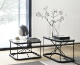Twiggy M -sohvapöytä mustalla rungolla ja lasikannella. Design Ilkka Suppanen & Raffaella Mangiarotti.