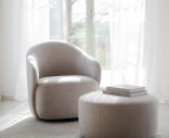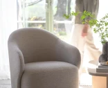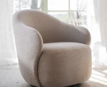 Chapeltown-nojatuoli Rowicolta hurmaa pehmeillä, kutsuvilla muodoillaan ja miellyttävän ympäröivällä tunteellaan. Pehmustettu istuin, reilut käsinojat ja pyörivä metallijalka tekevät tuolista yhtä mukavan kuin kauniin – nojatuoli, johon on helppo uppoutua.
