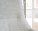 Nojatuolin runko on valmistettu metallista ja vahvistettu vanerilla. Se on verhoiltu kestävällä 100 % polyesterikankaalla (Leigh #101, vaaleanbeige). Jauhemaalatusta metallista valmistettu jalusta hiekkapintaisella rakenteella tuo sekä vakautta että hienostunutta ilmettä.
