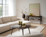 Dermot-nojatuoli Rowicolta on pyöristettyjen muotojen ja koristeellisten kangasompeleiden ansiosta tyylikäs valinta. Verhoiltu suositulla Anna #2 -kankaalla vaaleanbeigenä, nojatuoli tarjoaa erinomaista istuinmukavuutta ja sopii hyvin yhteen useimpien sohvien kanssa. Siinä on tukevat mustat jalat, ja se on sekä kestävä että mukava.