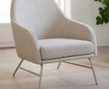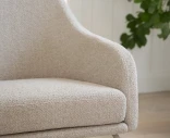 Hiekkapintainen metallijalusta muodostaa tyylikkään kontrastin pehmeälle kankaalle ja sen säädettävät jalat takaavat tasaisen sijoituksen kaikilla alustoilla. Verhoilu on valmistettu kestävästä polyesteristä ja on OEKO-TEX®-sertifioitu.