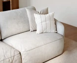 Sohva on varustettu irtonaisilla selkätyynyillä, jotka lisäävät joustavuutta ja mukavuutta. Istuintyyny on vahvistettu nozag-jousilla, jotka tarjoavat kestävää ja mukavaa helpotusta myös pitkäaikaisessa käytössä. Istuin on pehmustettu laadukkaalla kylmävaahdolla lisämukavuuden takaamiseksi.