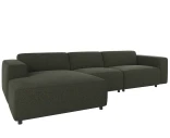 Willard 4-istuttava sohva vasemmalla olevalla divaanilla, verhoiltu Alice #162 -vihreällä kankaalla, tarjoaa tyylikästä skandinaavista muotoilua ja erinomaista mukavuutta.
