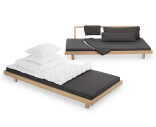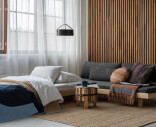 Day&Night vuodesohvassa Tapio Anttila Collectionilta on irrotettavat istuin- ja selkätyynyt. Kaksi istuinmoduulia voidaan pinota ja käyttää joko parivuoteena tai kahtena erillisenä vuoteena. Patjat voidaan erottaa vetoketjulla. Sohva on verhoiltu kestävästä kankaasta ja patjoissa on viskoelastista vaahtoa lisämukavuuden takaamiseksi. Kaksi petauspatjaa, kaksi peittoa ja neljä tyynyä sisältyvät ja ne säilytetään selkänojatyynyjen sisällä.