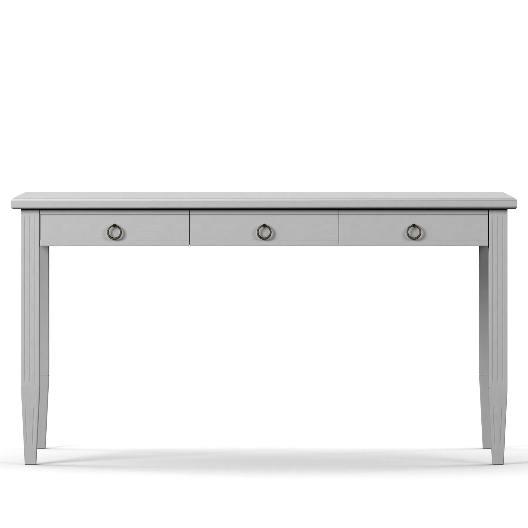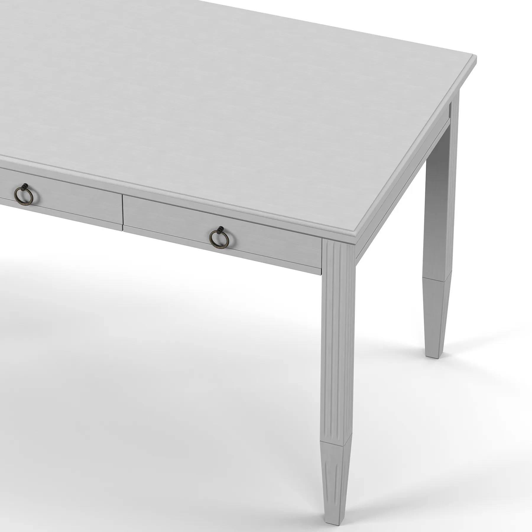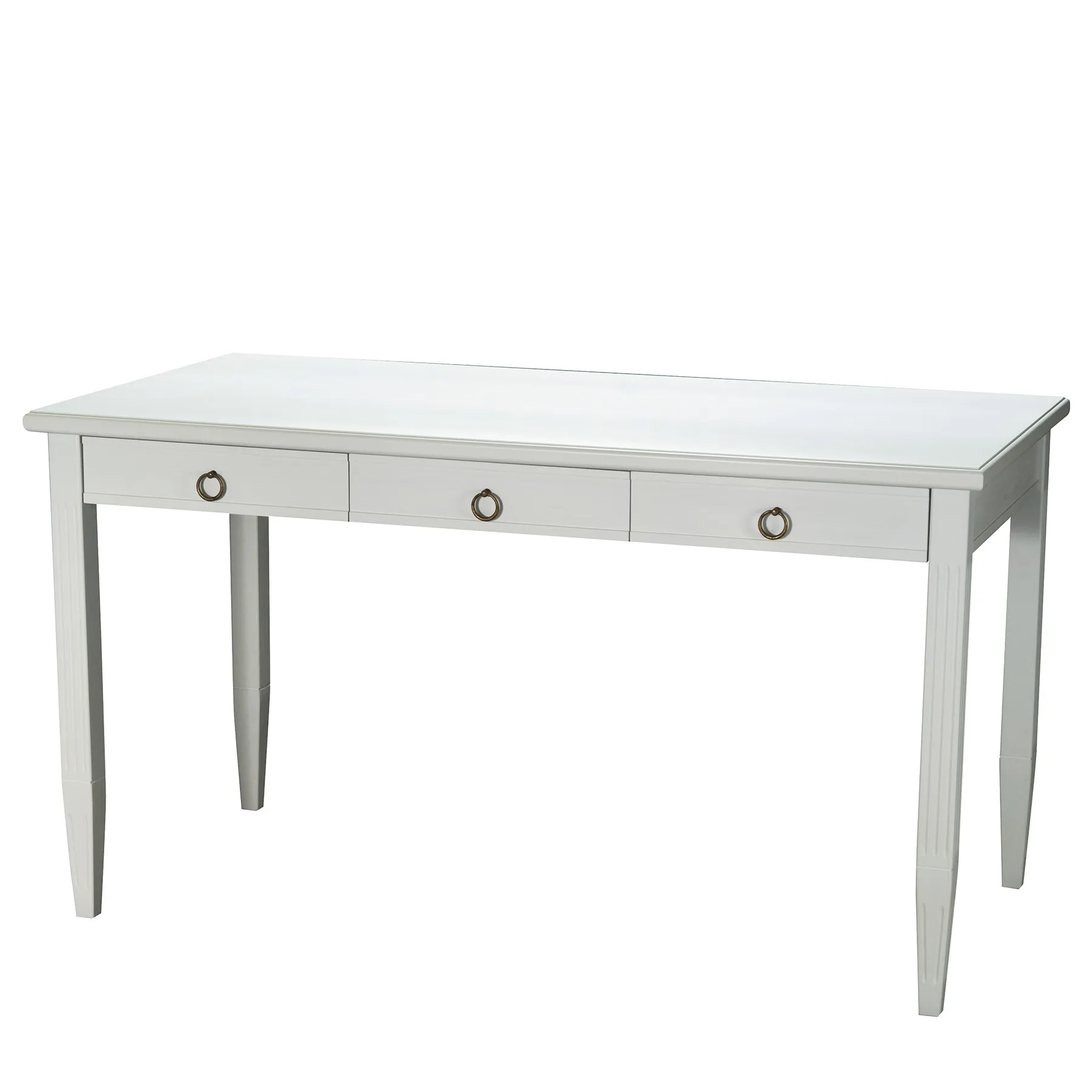 Kirjoituspöytä on käsinmaalattu, ja siinä on kevyesti strukturoidtu viimeistely. Pelkistetty muoto ja huomaamattomat yksityiskohdat tekevät kalusteesta sopivan niin kotitoimistoon kuin työhuoneeseen.