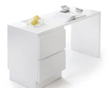 Pöytäkansi on käsitelty kestävällä valkoisella polyuretaanilakalla, mikä tekee siitä kulutusta kestävän ja helposti puhdistettavan.