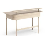 Luna on siro työpöytä massiivitammesta, jossa on sisäänrakennettu laatikko ja kapea hylly takareunassa. Hillitty ja toimiva huonekalu, joka sopii yhtä hyvin kotitoimistoon kuin makuuhuoneeseenkin.