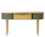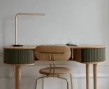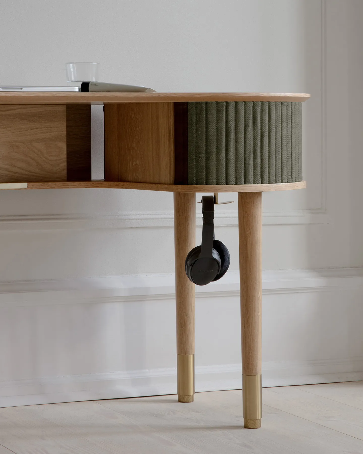 Audacious-työpöytä on huolella suunniteltu tammesta valmistettu kirjoituspöytä, jossa pehmeät muodot ja älykkäät yksityiskohdat tukevat sujuvaa arjen työskentelyä. Täydellinen valinta, kun haluat työpisteen, joka on sekä käytännöllinen että viihtyisä.