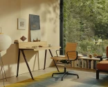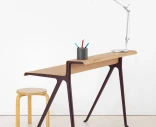 Courier on minimalistinen työpöytä, jossa on tammiviilutettu levy muotopuristetusta vanerista ja jauhemaalatusta, painevaletusta alumiinista valmistettu runko. Integroitu korotettu takareuna luo käytännöllisen tason näytölle, valaisimelle tai muille tarvikkeille – täydellinen ratkaisu, kun haluat pitää työpinnan siistinä ja järjestyksessä.
