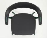 Nelisakarainen jalusta tuo vakautta viemättä tilaa, ja tuoli sulautuu ympäristöönsä – oli kyseessä ruokapöytä, työpiste tai neuvotteluhuone. Istuimen ja selkänojan materiaali on kierrätysmuovia ilman lasikuitua, mikä tekee siitä täysin kierrätettävän. Kaikki osat ovat vaihdettavissa, helposti purettavissa ja suunniteltu pitkää käyttöikää varten.