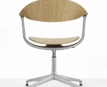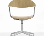 Mynt-puinen versio on tuolin aistikkaampi ja visuaalisempi tulkinta – tammiviilu tuo lämpöä ilmeeseen samalla kun tuolin kevyt ja toiminnallinen luonne säilyy. Selkänoja ja istuin on valmistettu muotopuristetusta puusta, ja sisäänrakennettu mekanismi seuraa kehon liikkeitä arjen istumistilanteissa.