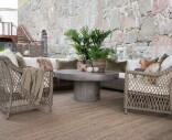 All weather wicker - alumiinirunko ja PE rottinki. 100% polyesteri tyynyt. Suositellaan sekä sisään että ulkokäyttöön.