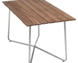 Pöydässä on irrotettava teräsrunko, mikä tekee siitä erityisen kestävän ja sään- sekä kosteudenkestävän – täydellisen valinnan ympärivuotiseen ulkokäyttöön. Pöytäkansi on saatavana öljytystä männystä, öljytystä tammesta, valkolakatusta tammesta, vihreälakatusta tammesta tai käsittelemättömästä tiikistä. Kaikki puuosat ovat FSC®- tai PEFC-sertifioituja, mikä takaa, että materiaalit ovat peräisin vastuullisesti hoidetuista metsistä. Pöytä on saatavana kuumasinkityllä tai mustaksi maalatulla rungolla, kun taas mäntyversiossa on vihreä runko.