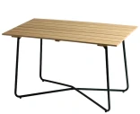 Pöydässä on irrotettava teräsrunko, mikä tekee siitä erityisen kestävän ja sään- sekä kosteudenkestävän – täydellisen valinnan ympärivuotiseen ulkokäyttöön. Pöytäkansi on saatavana öljytystä männystä, öljytystä tammesta, valkolakatusta tammesta, vihreälakatusta tammesta tai käsittelemättömästä tiikistä. Kaikki puuosat ovat FSC®- tai PEFC-sertifioituja, mikä takaa, että materiaalit ovat peräisin vastuullisesti hoidetuista metsistä. Pöytä on saatavana kuumasinkityllä tai mustaksi maalatulla rungolla, kun taas mäntyversiossa on vihreä runko.