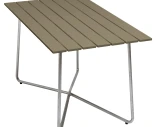 Pöydässä on irrotettava teräsrunko, mikä tekee siitä erityisen kestävän ja sään- sekä kosteudenkestävän – täydellisen valinnan ympärivuotiseen ulkokäyttöön. Pöytäkansi on saatavana öljytystä männystä, öljytystä tammesta, valkolakatusta tammesta, vihreälakatusta tammesta tai käsittelemättömästä tiikistä. Kaikki puuosat ovat FSC®- tai PEFC-sertifioituja, mikä takaa, että materiaalit ovat peräisin vastuullisesti hoidetuista metsistä. Pöytä on saatavana kuumasinkityllä tai mustaksi maalatulla rungolla, kun taas mäntyversiossa on vihreä runko.