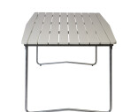 Taittuva teräsrunko tekee pöydästä sekä tukevan että säänkestävän, ja se voidaan tarvittaessa taittaa kokoon helppoa säilytystä varten. Pöytäkansi on saatavana öljytystä tammesta, valkolakatusta tammesta, vihreälakatusta tammesta ja käsittelemättömästä tiikistä. Kaikki puuosat ovat FSC®-sertifioituja, mikä takaa, että puu on peräisin vastuullisesti hoidetuista metsistä. Pöytä on saatavana joko kuumasinkityllä tai mustaksi maalatulla rungolla, mikä tarjoaa useampia vaihtoehtoja erilaisiin ulkotiloihin.