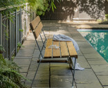 Sohvassa on kuumasinkitty teräsrunko, joka takaa korkean kestävyyden ja säänkestävyyden. Istuinosaa ja selkänojaa on saatavana kolmessa vaihtoehdossa: öljytty tammi, valkolakattu tammi (NCS 0502Y) ja käsittelemätön tiikki. Kaikki tammesta ja tiikistä valmistetut puuosat ovat FSC®-sertifioituja, mikä varmistaa vastuullisen metsänhoidon.