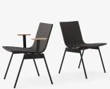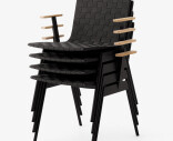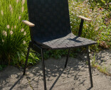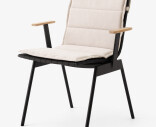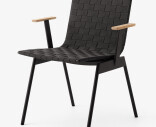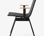 Ville-mallisto juhlistaa ulkoilmaelämää skandinaavisen luonnon inspiroimana. Tuoli on valmistettu jauhemaalatusta teräksestä ja verhoiltu punotulla polyesterivyöllä pehmeyttä ja kehon lämpötilaan sopeutumista varten. Tiikkiset käsinojat tuovat lisämukavuutta.