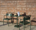 “The Linear Steel Café Table was designed from the idea of presenting durable materials in a sophisticated and understated expression for outdoor use with its form language inspired by the notion of meetings—the meetings of lines, the meetings of shapes and the meetings of materials. The design is defined by its straight lines for a contemporary yet timeless aesthetic, translating the values of elegance, longevity and functionality into modern outdoor furniture.”