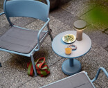“The Linear Steel Series was designed from the idea of presenting durable materials in a sophisticated and understated expression for outdoor use with its form language inspired by the notion of meetings—the meetings of lines, the meetings of shapes and the meetings of materials. The design is defined by its straight lines for a contemporary yet timeless aesthetic through the details of its folded edges, halfcircular intersecting legs and small spacing for easy outflow of water. It is through these subtle elements that the Linear Steel Series translates the values of elegance, longevity and functionality into modern outdoor furniture.”