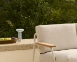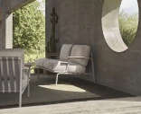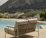 Settle 2-istuttava sohva on suunniteltu tarjoamaan sekä mukavuutta että esteettisyyttä ulkotiloissa. Galvanoitu ja jauhemaalattu teräsrunko on valmistettu kestämään sään vaihteluita, kun taas harkittu muotoilu näkyvillä tekstiilinauhoilla ja pehmeillä linjoilla luo kevyen ja tyylikkään ilmeen. FSC™-sertifioidut sapelemahonkiset käsinojat tuovat lämpimän, luonnollisen kontrastin minimalistiseen metallirunkoon.