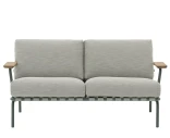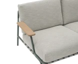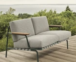 Settle 2-istuttava sohva on suunniteltu tarjoamaan sekä mukavuutta että esteettisyyttä ulkotiloissa. Galvanoitu ja jauhemaalattu teräsrunko on valmistettu kestämään sään vaihteluita, kun taas harkittu muotoilu näkyvillä tekstiilinauhoilla ja pehmeillä linjoilla luo kevyen ja tyylikkään ilmeen. FSC™-sertifioidut sapelemahonkiset käsinojat tuovat lämpimän, luonnollisen kontrastin minimalistiseen metallirunkoon.