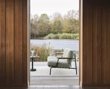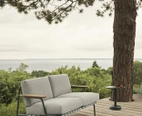 Settle 2-istuttava sohva Muutolta on elegantti ja huolella suunniteltu ulkosohva, joka yhdistää ajattoman skandinaavisen muotoilun ja älykkään toiminnallisuuden. Ilmava teräsrakenne ja sapelemahonkiset käsinojat luovat tasapainoisen kontrastin, joka antaa sohvalle harmonisen ilmeen – täydellinen pitkiin kesäiltoihin ja rentouttaviin hetkiin ulkona.