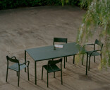 Tämä pöytä kuuluu New Worksin May-kokoelman ulkokalusteisiin. 170 cm pitkä pöytä on vankka ja tyylikäs huonekalu, joka erottuu ajattomalla muotoilullaan ja käytännöllisillä ominaisuuksillaan. Pulverimaalatusta teräksestä valmistettu pöytä takaa erinomaisen säänkestävyyden ja soveltuu hyvin pohjoismaisiin ilmasto-olosuhteisiin. Pöytä on helppo puhdistaa ja pöytälevyn hienovarainen ura estää veden kertymisen.