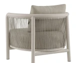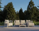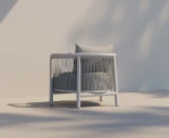 Kirra Lounge Chair yhdistää estetiikan ja toimivuuden tyylikkäässä lepotuolissa, joka kestää ulkona ympäri vuoden. Se on valmistettu jauhemaalatusta alumiinista, joka ei ruostu, ja verhoiltu olefiinikankaalla, josta 20 % on kierrätettyä kuitua – harkittu valinta, joka näkyy ja tuntuu. Kangas hylkii vettä ja likaa, kestää UV-säteilyä ja on ympäristösertifioitu, mikä tekee siitä kestävän vaihtoehdon moderniin ulkotilaan.