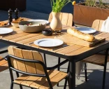 Kirra Dining Table yhdistää toiminnallisuuden ja estetiikan kestäväksi ulkopöydäksi, joka sopii viihtyisiin hetkiin ympäri vuoden. Suorakulmainen pöytäkansi on valmistettu FSC®-sertifioidusta, käsittelemättömästä tiikistä ja lepää tukevan jauhemaalatun alumiinirungon päällä – yhdistelmä, joka tekee pöydästä sekä säänkestävän että helppohoitoisen.