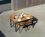 Tyylikäs ulkoruokapöytä, jossa on suorakulmainen kansi massiivista tiikkiä ja jalat jauhemaalattua alumiinia. Pöytä on osa SACKitin Kirra-sarjaa ja sopii täydellisesti pitkiin illallisiin puutarhassa tai terassilla.