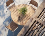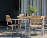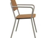 Kirra Patio Chair on tyylikäs ulkotuoli SACKitilta, jossa istuin ja selkänoja ovat FSC®-sertifioitua tiikkiä ja runko jauhemaalattua alumiinia. Kevyt ja kestävä ruokatuoli, joka sopii täydellisesti kaikkiin Kirra-sarjan ulkopöytiin.