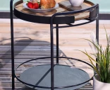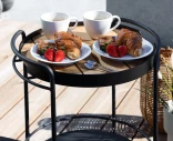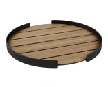 Patio Serving Tray on tyylikäs tarjoilutarjotin, joka on valmistettu massiivisesta tiikistä ja jauhemaalatusta alumiinista – suunniteltu toimimaan sekä tarjoilualustana että tarjotinpöytänä. Täydellinen sekä sisä- että ulkokäyttöön, ja se sopii erinomaisesti yhteen SACKitin rahien ja Serving Table -pöydän kanssa.