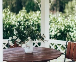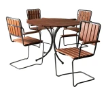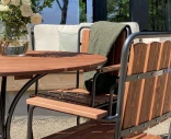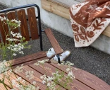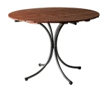 Ulkopöytä, jossa on pyöreä pöytälevy suomalaisesta männystä. Puun luonnollista rakennetta korostetaan hiomalla. Teräsrunko on pulverimaalattu harmaaksi ja antaa pöydälle vakautta. Pöytä sopii erinomaisesti sekä sisä- että ulkokäyttöön.