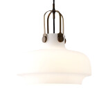 Riippuvalaisin suupuhallettua opaalilasia ja messinkiä, design Space Copenhagen.