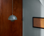 "In 1968 the students’ revolts in Paris, Rome and the US were overthrowing stiff, old values, and initiating the Flower-Power generation of peace, love and harmony. Same year, Stanley Kubrick pictured the future of the year 2001, featuring the Verner Panton Chair, and man was soon to set foot on the moon. In the world of design, a colourful, playful pendant hung in restaurants and exhibitions, and very soon, in everybody’s homes. The FlowerPot with its two semicircular spheres facing each other has long proved its lasting design quality and is just as much a synonym of our time, too."