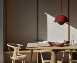"In 1968 the students’ revolts in Paris, Rome and the US were overthrowing stiff, old values, and initiating the Flower-Power generation of peace, love and harmony. Same year, Stanley Kubrick pictured the future of the year 2001, featuring the Verner Panton Chair, and man was soon to set foot on the moon. In the world of design, a colourful, playful pendant hung in restaurants and exhibitions, and very soon, in everybody’s homes. The FlowerPot with its two semicircular spheres facing each other has long proved its lasting design quality and is just as much a synonym of our time, too."