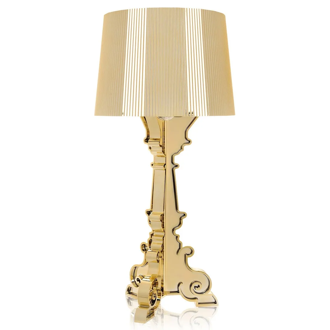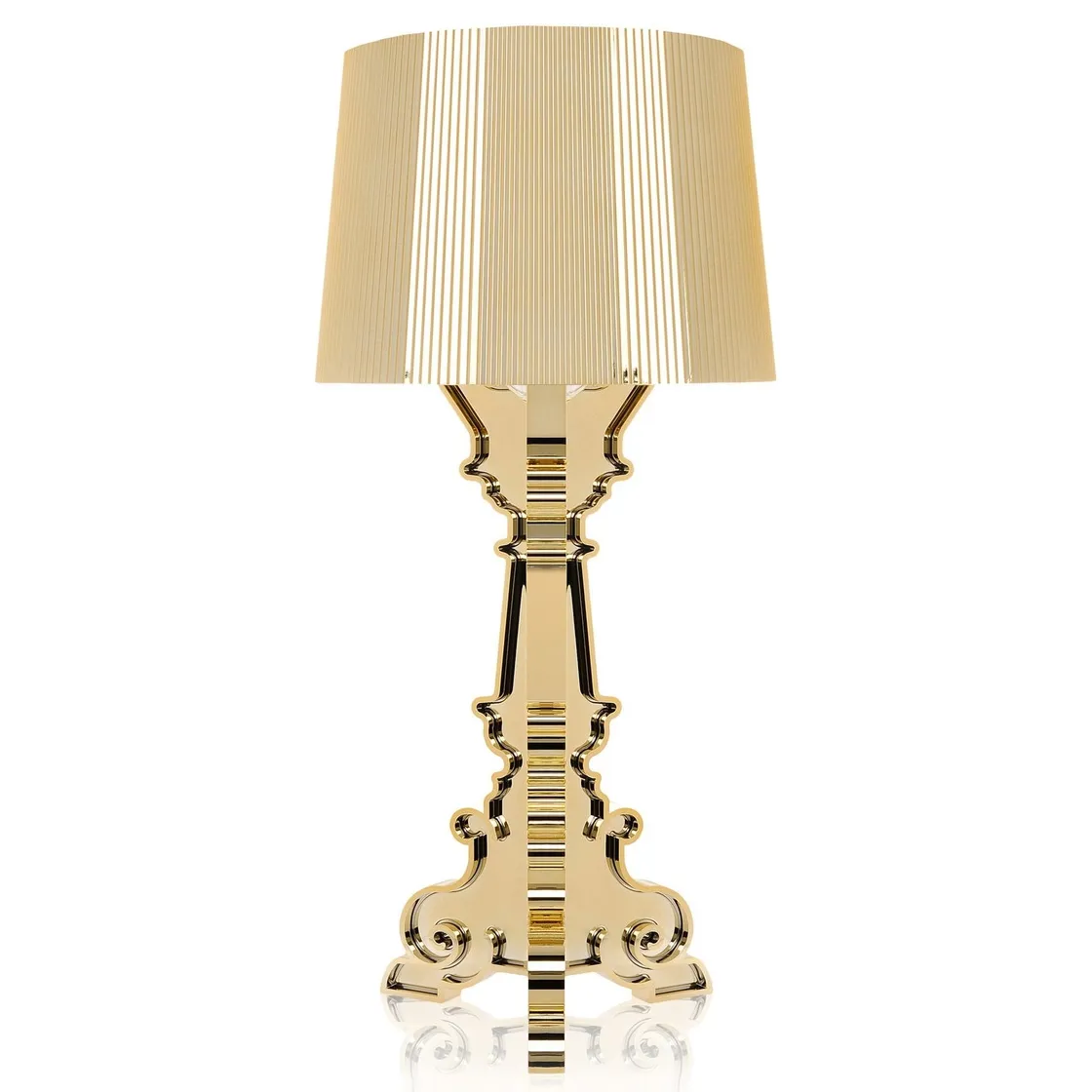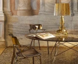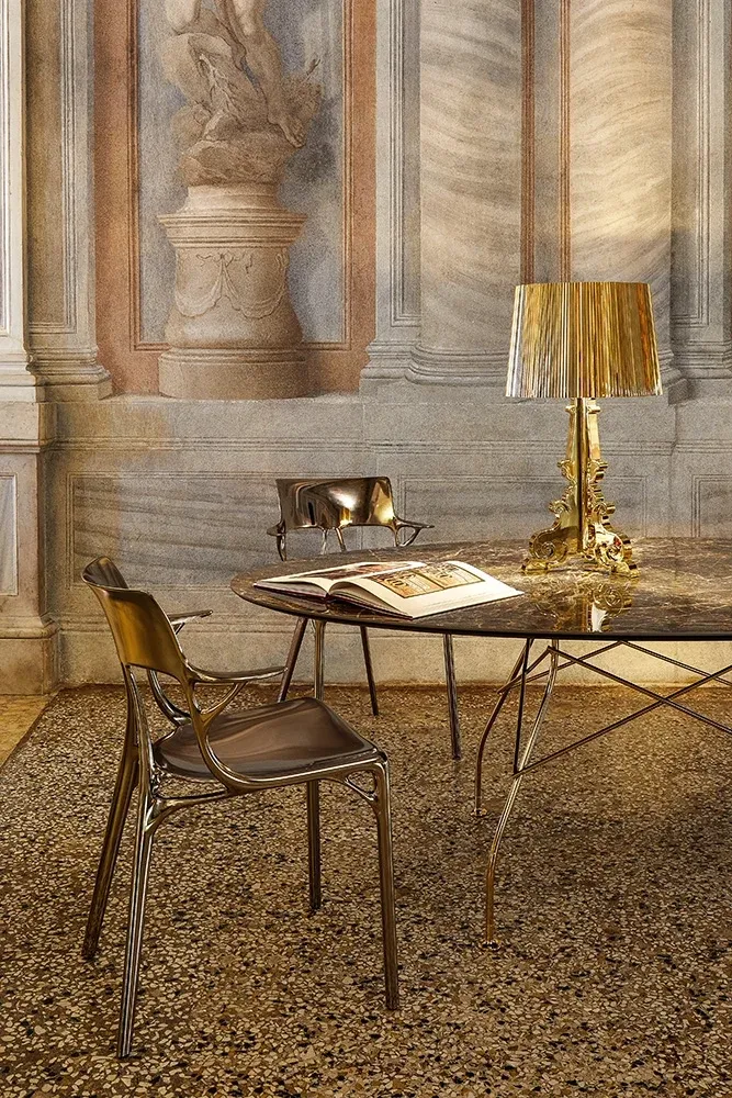 Bourgie on yksi Kartellin ikonisimmista pöytälampuista, jossa klassinen barokkityyli kohtaa modernin materiaaliteknologian. Metallinhohtoisessa Gold-versiossa lampulla on ylellinen ilme, peilimäinen metallipinta ja koristeellinen valon leikki.