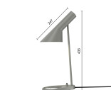 AJ Mini Pöytä on pienempi versio klassisesta AJ-pöytävalaisimesta ja sopii erityisen hyvin esimerkiksi ikkunalaudalle tai sängynpöydälle. Valaisin antaa alaspäin suunnattua valoa, ja varjostimen kulmaa voidaan säätää tarpeen mukaan. Varjostimen valkoiseksi maalattu sisäpuoli takaa pehmeä valon.