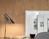 Klassikkovalaisin AJ Pöytä antaa alaspäin suunnattua valoa, ja varjostimen kulmaa voidaan säätää tarpeen mukaan. Varjostimen valkoiseksi maalattu sisäpuoli takaa pehmeä valon.