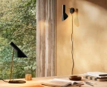 Louis Poulsenin AJ-seinävalaisin antaa suunnatun, häikäisemättömän valon ja sopii hyvin lukuvalaisimeksi sängyn tai nojatuolin viereen. Varjostin on säädettävä, ja valkoiseksi lakattu sisäpinta takaa pehmeän valonjaon. Valaisin toimitetaan mustalla tekstiilijohdolla ja seinälevyyn integroidulla virtakytkimellä.