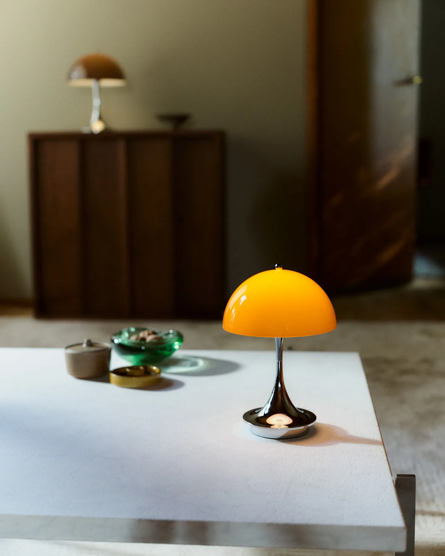 Louis Poulsen PANTHELLA 160 PORTABLE V3 pöytävalaisin, oranssi/kromi