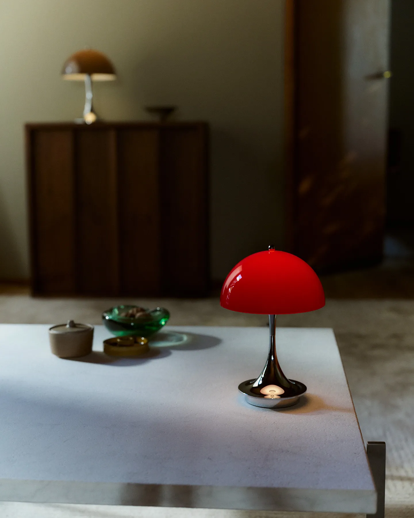 Panthella 160 Portable V3 Originals-väreissä jatkaa Verner Pantonin ikonisen vuoden 1971 muotoilun perintöä. Tässä mallistossa korostetaan valaisimen alkuperäistä ilmettä, jossa väreillä on selkeä rooli ja ne tukevat muotokieltä, joka tuntuu ajankohtaiselta myös tänä päivänä.