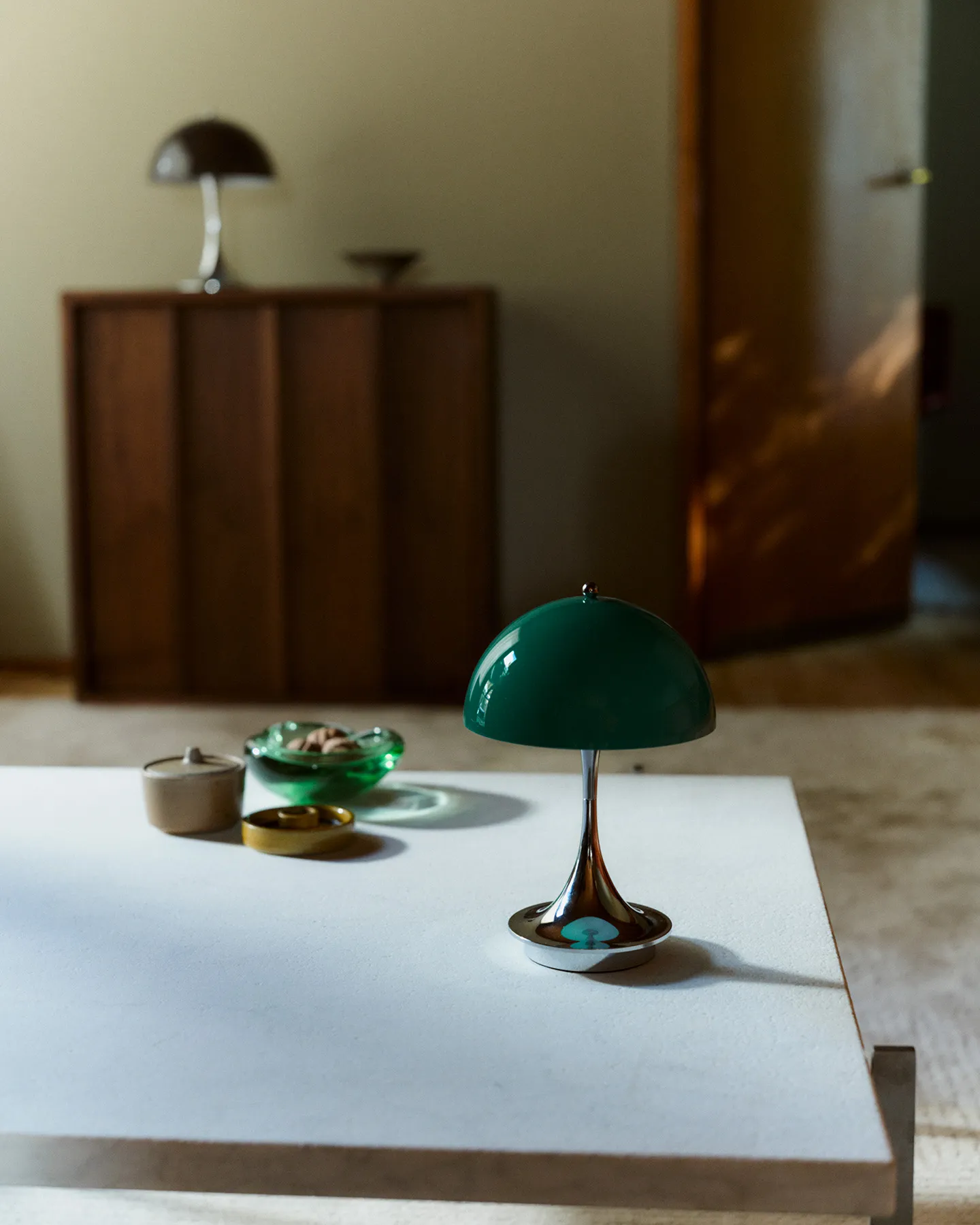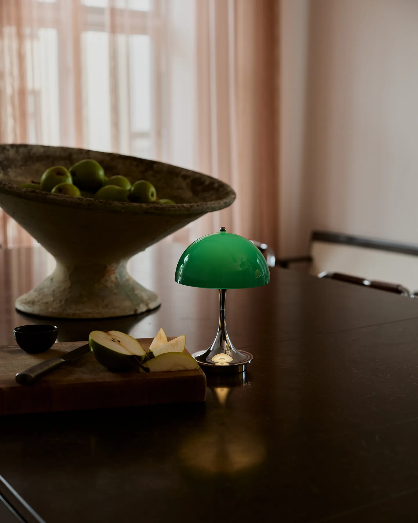 Louis Poulsen PANTHELLA 160 PORTABLE V3 pöytävalaisin, vihreä/kromi
