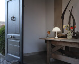 Kätevä Panthella 250 Portable ladataan USB:n kautta ja siinä on kolme himmennysasetusta. Se soveltuu sekä sisä- että ulkokäyttöön, sillä se on sertifioitu kosteisiin tiloihin.