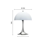 Panthella 250 Portable V3 on päivitetty versio Verner Pantonin klassikosta, pidemmällä akunkestolla ja kosketusohjauksella. Chrome-versiossa valaisimessa on peilimäinen pinta ja ylellinen ilme.
