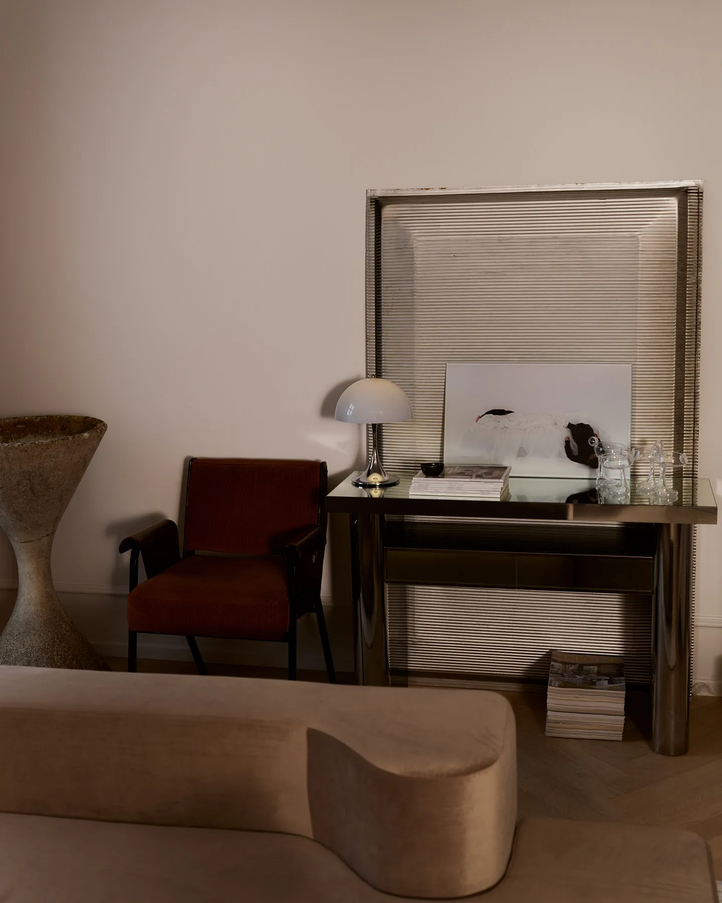 Panthella 250 Portable Originals-väreissä on kannettava pöytävalaisin, joka tuo esiin Verner Pantonin alkuperäisen 1970-luvun väripaletin. Suurempi koko ja tasainen valonjako tekevät valaisimesta monikäyttöisen – se toimii yhtä hyvin tunnelmavalona kuin joustavana työvalona, niin sisällä kuin ulkona.
