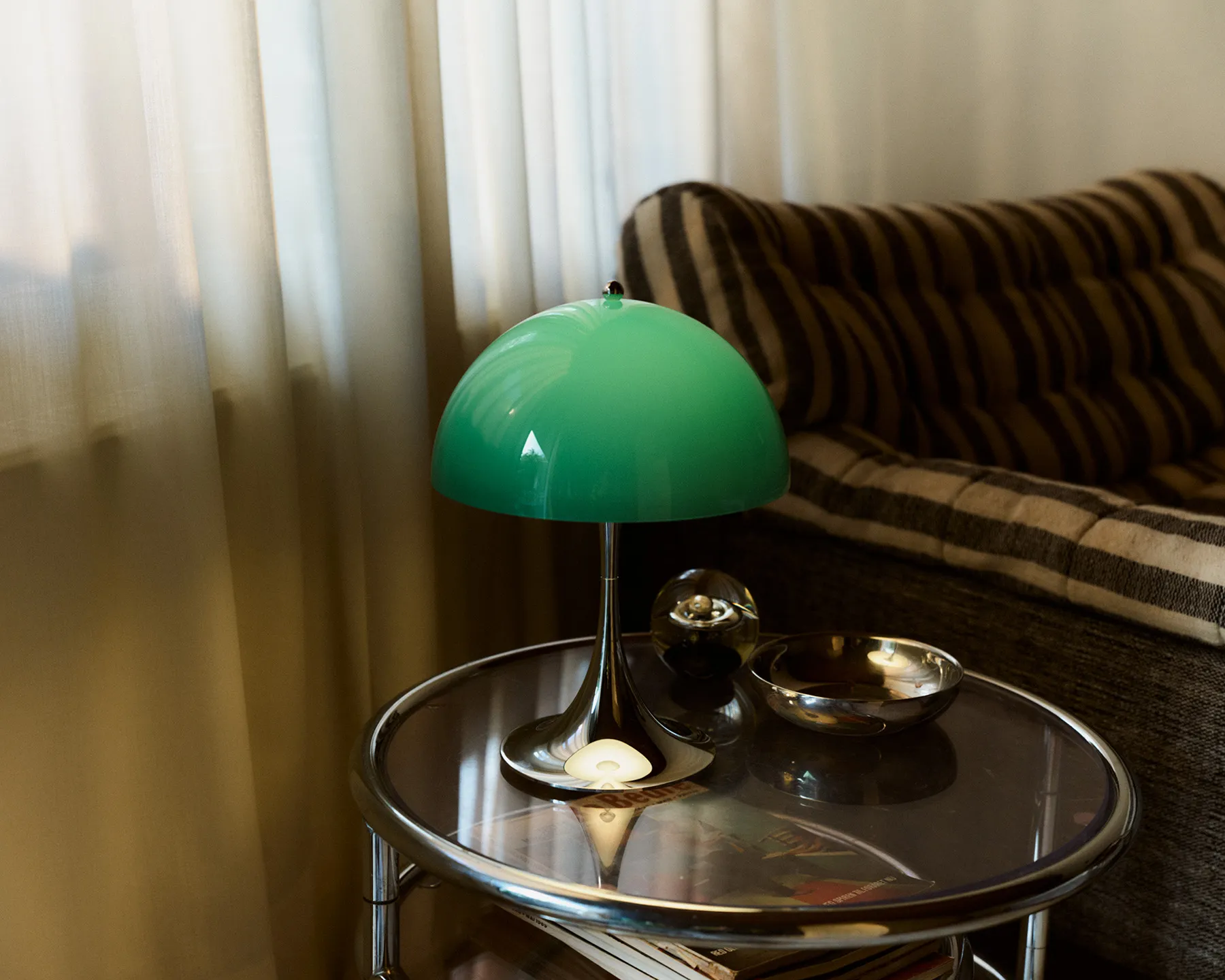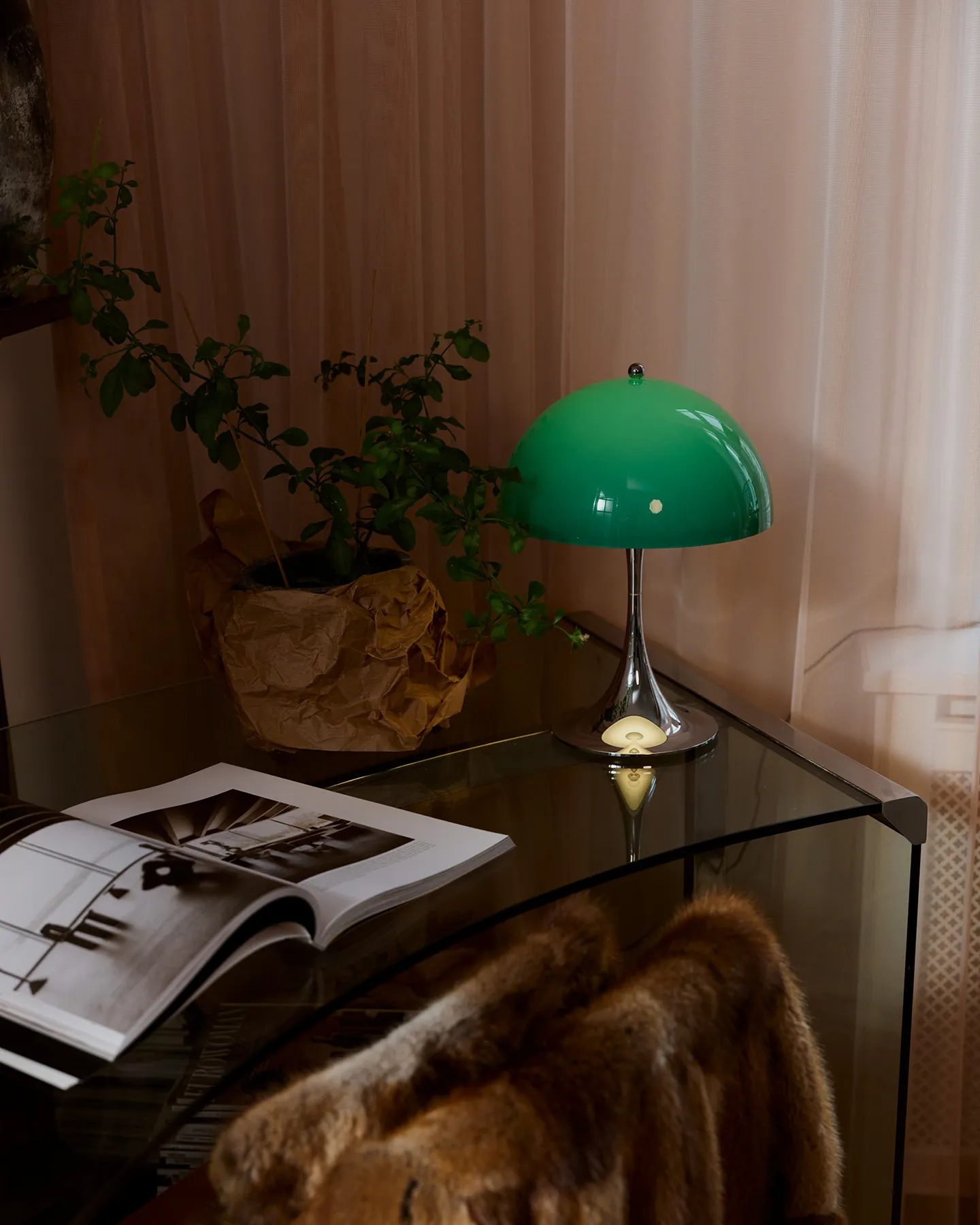 Louis Poulsen PANTHELLA 250 PORTABLE V3 pöytävalaisin, vihreä/kromi